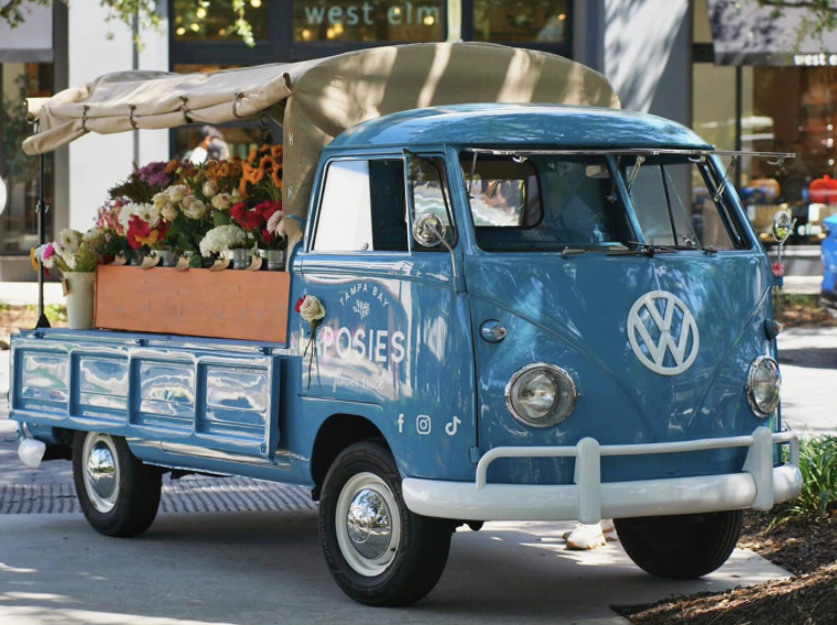 Posies Flower Truck to bring “Rosie”, a VW single cab for display and sale of flower arrangements.